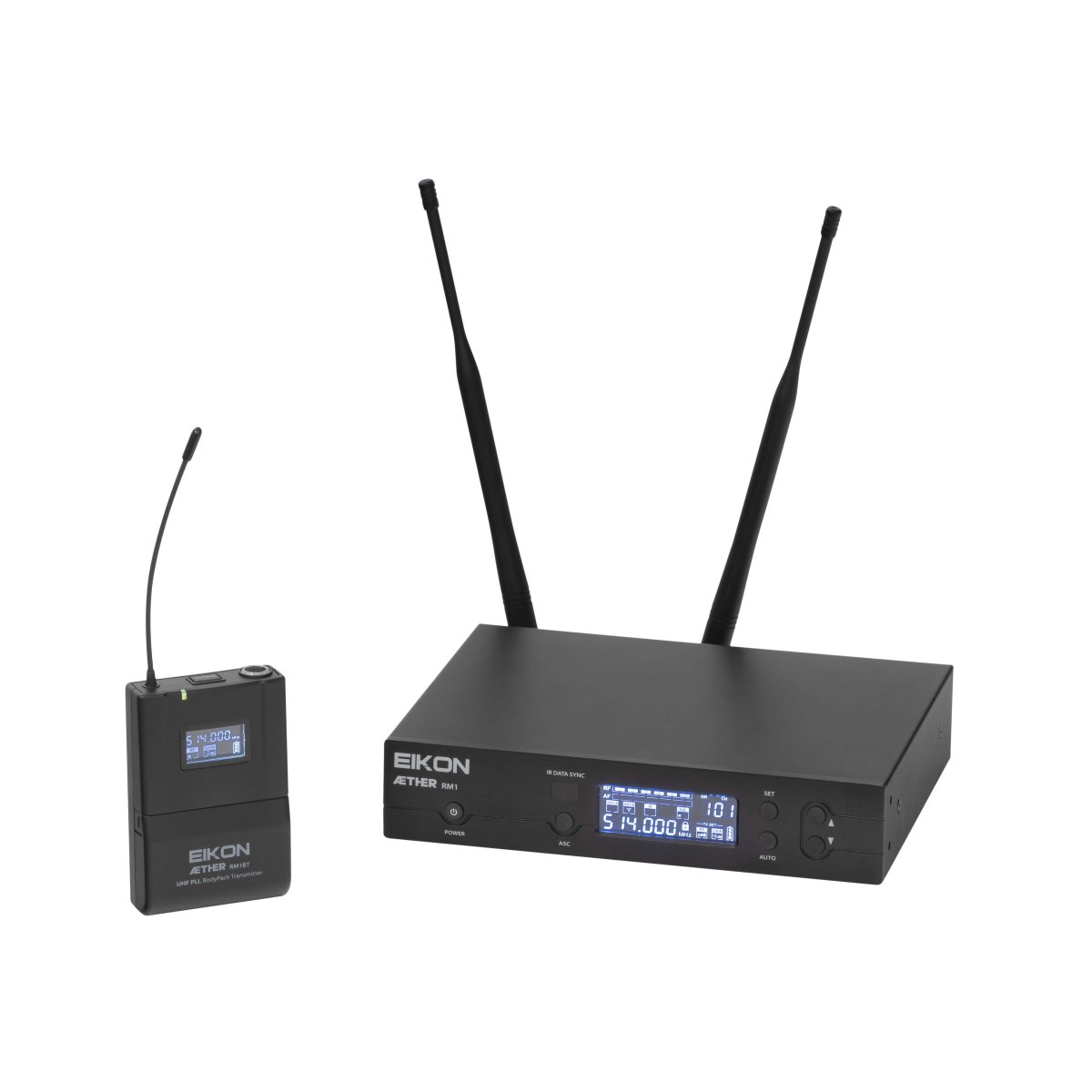 Il microfono wireless AETHER RM1 è un sistema professionale UHF PLL, true diversity che fornisce una trasmissione del segnale affidabile e di alta qualità, dotato di scansione automatica dei canali e sincronizzazione IR.